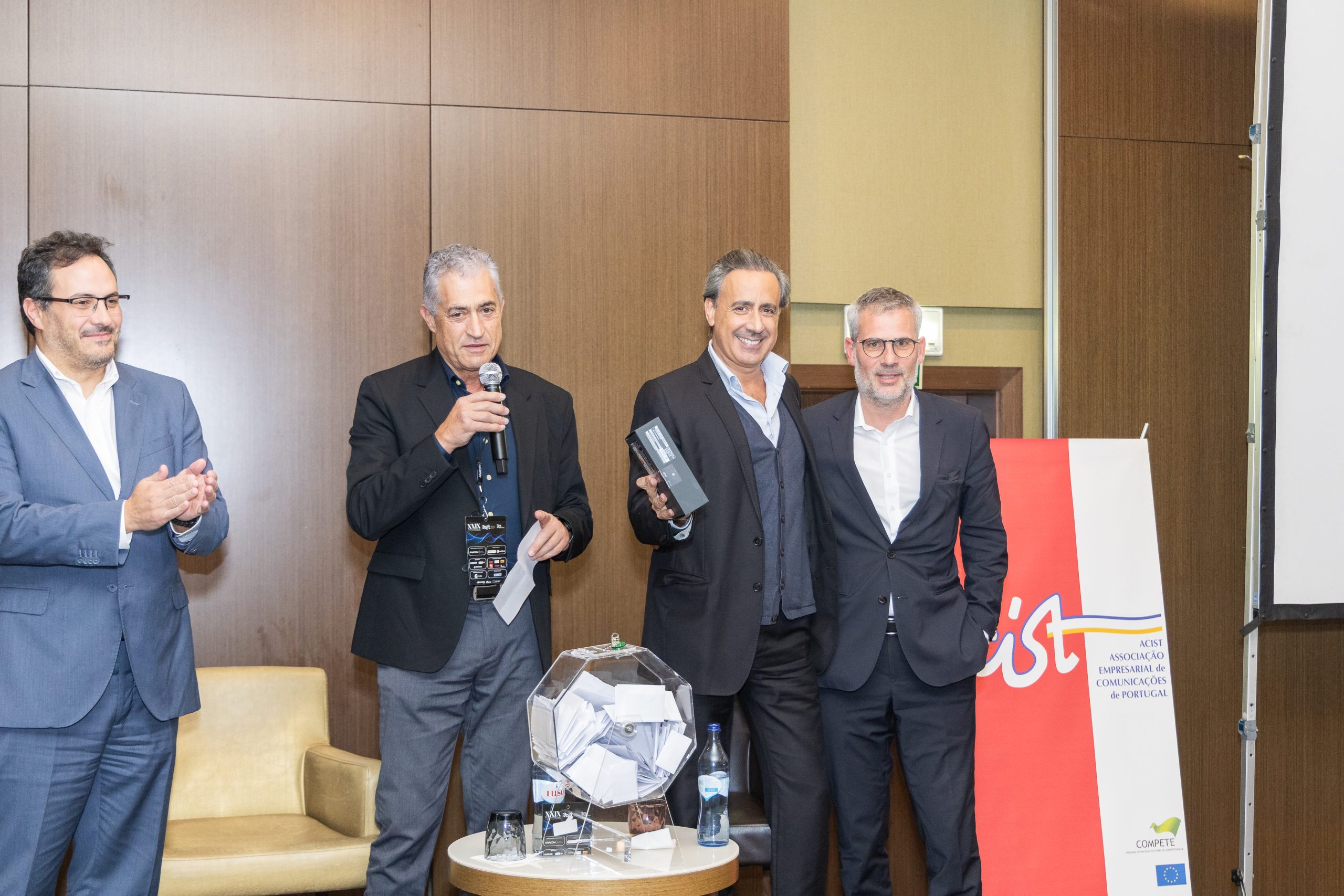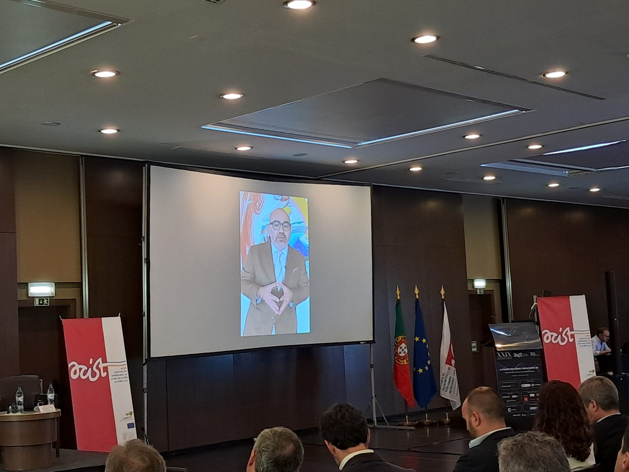 Sessão Solene de Abertura ACIST – Presidente da Direção – Luís Peixoto ANACOM – Administrador – Manuel Cabugueira Ministro das Infraestruturas e Habitação – Miguel Pinto Luz |